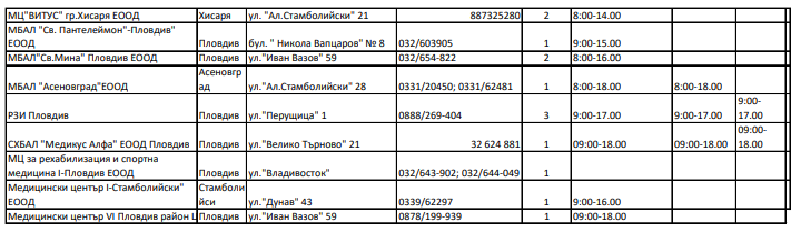 В момента ваксини се слагат в 27 пункта, като с изключение на в Пловдив, има разкрити кабинети и в Асеновград, Първомай, Раковски, Карлово, Хисаря, Стамболийски и Баня. Шест кабинета работят и през почивните дни и всеки искащ може да се ваксинира през днешния ден и на следващия ден без авансово записан час.