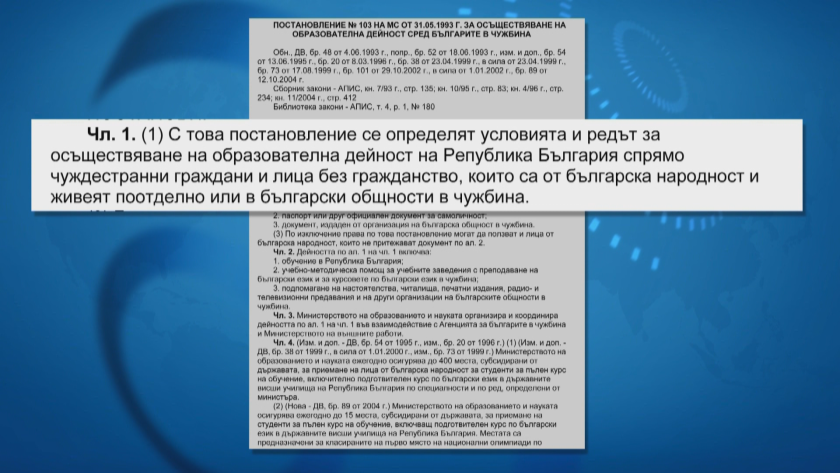 " В програмата на държавното управление е заложена опция - точно разширение на постановлението с оглед даване на квота на възпитаниците на българските неделни учебни заведения, само че това следва да се случи. Към момента, за жалост, за тези младежи и тези обстановки решение няма ", сподели Райна Манджукова - изпълнителен шеф на Агенцията за българите в чужбина.