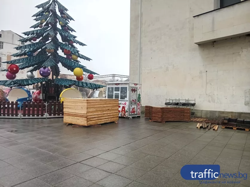 Започна демонтажът на коледната декорация от центъра на Пловдив. В момента тече разглобяването на оборудванията и коледните къщички, които бяха ситуирани пред Централната поща в града и в продължение на седмици бяха част от празничната атмосфера в централната градска част.