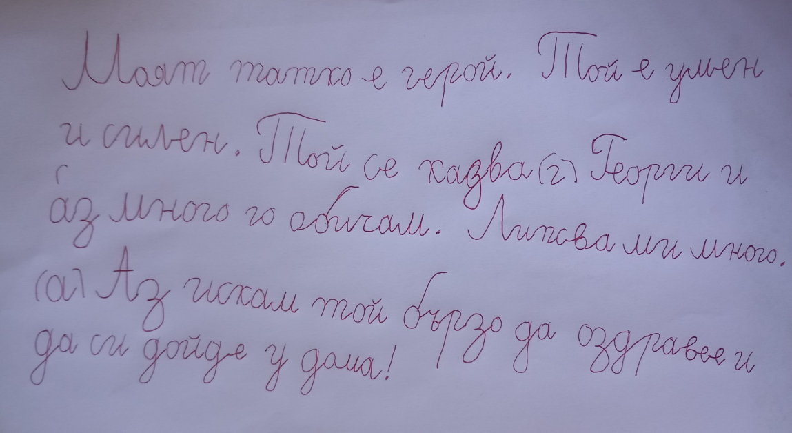 „ Ние си страдаме вкъщи, всеки по своему. Мими (по-малката дъщеря) е тревожна тези дни и това даже се отрази на здравето и. Тя облече възприятията си с думи, които написа сама и искаше да покаже на всички, какъв брой тъжи по баща. Помоли ме да Ви покажа написаното от нея, ” – написа майката в пост за обществените мрежи.