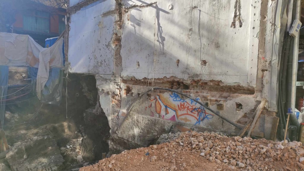 Укрепват се основите и стените на прилежащата постройка, потърпевша поради строителните действия, сподели вложителят на обекта Калин Ганев: