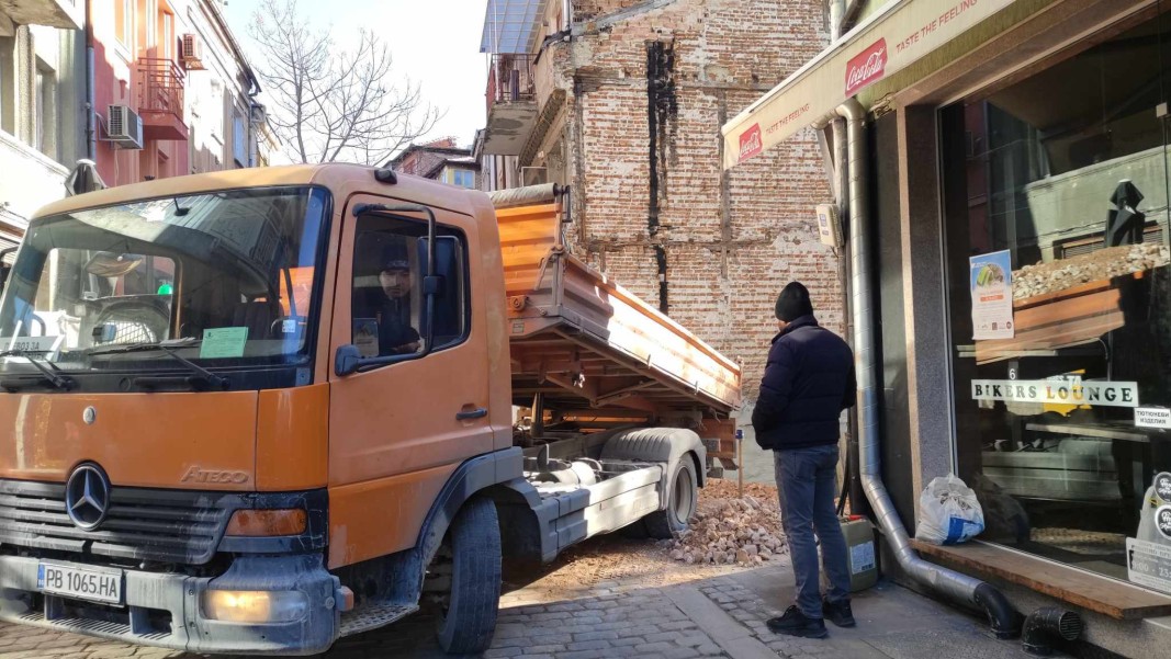 На мястото през днешния ден имаше и представители на общинския инспекторат, които следяха за това дали водачите на камиони, които транспортират насипни материали, имат пропуски и платнища на ремаркетата. Докато четириетажната постройка бъде укрепена, притежателите би трябвало да наемат квартира.