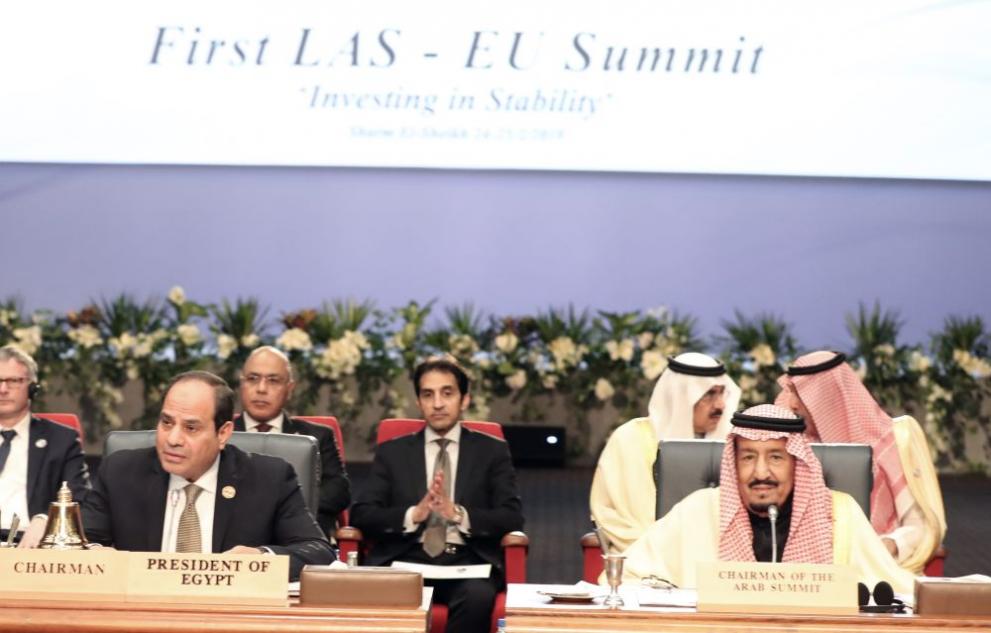 БГНЕС Срещата откри 74-годишният Абдел Фатах Сиси, който от 2014 година е шестият президент на Египет, а от този месец пое и председателството на Африканския съюз. Той посрещна държавни и държавни ръководители на 24 от 28-те страни в Европейския съюз и на 15 от 22-те страни в Арабската лига. Останалите страни в двете организации са показани на по-ниско равнище. Не взе участие Сирия, чието участие в Арабската лига е замразено от 2011 година до осъществяване на проекта на лигата за прекъсване на кръвопролитията.