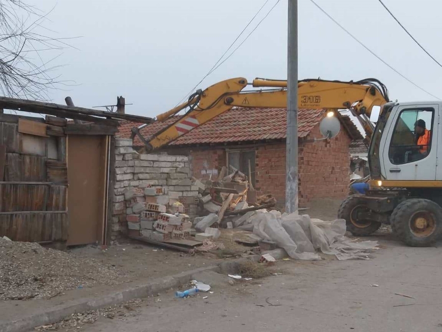 Започна събарянето на първите 8 къщи в ромската махала в село Войводиново. Предвижда се в идващите дни да бъдат отстранени общо към 15 постройки.