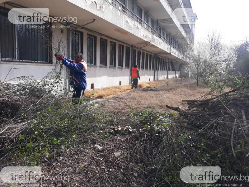 Започна стремително разчистване на някогашната Белодробна болница в Пловдив. От сутринта чиновници на Оперативна програма „ Чистота” изрязват шубраци и прорасляци от двора и ги товарят на камиони. „ След това ще стартират да изнасят счупените мебели от постройката и да разчистват и вътре”, изясни пред TrafficNews шефът на общинското дружество Димитър Георгиев, който следеше работата на място. С него бе и сътрудника му Николай Георгиев, както и доктор Генади Странджев - последният настоящ шеф на Белодробната болница. За ремонта на постройката, която е под ключ от към 6 години, ще са нужни над 1 млн. лв..