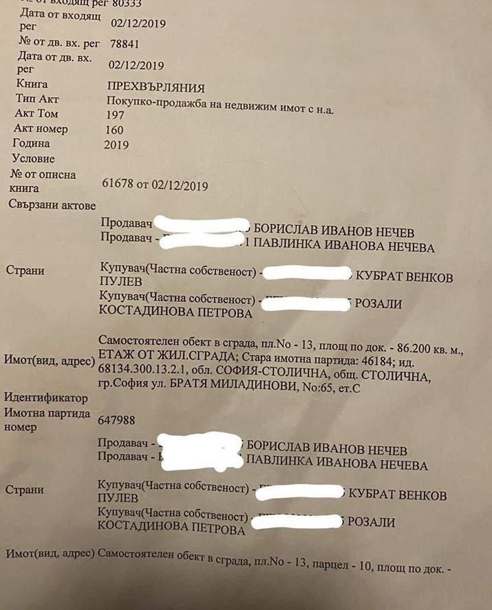 В своя обява във фейсбук певицата насочи гнева си към Розали, която й е лишила обичания. В удостоверение на думите си фолкаджийката даже разгласява документ, от който става очевидно, че Розали и Кубрат дружно са си купили етаж от къща в центъра на София като самобитно любовно гнездо.
