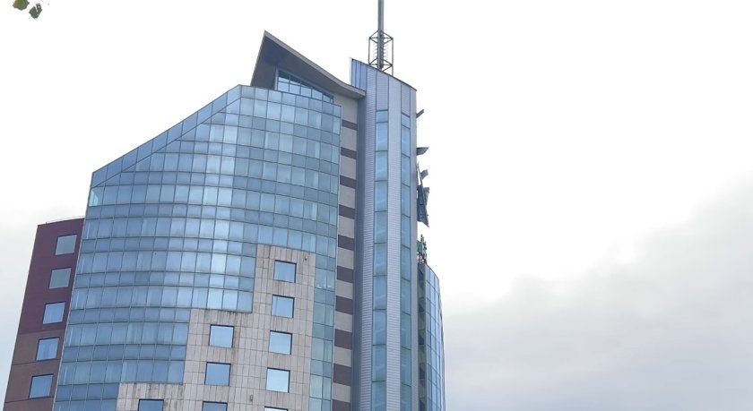 Силният вятър отчупи и част от фасадата на 18-етажен хотел. Той се намира на кръговото кръстовище сред комплексите " Славейков ", " Изгрев " и " Зорница " и е затворено за транспортни средства от сутринта.