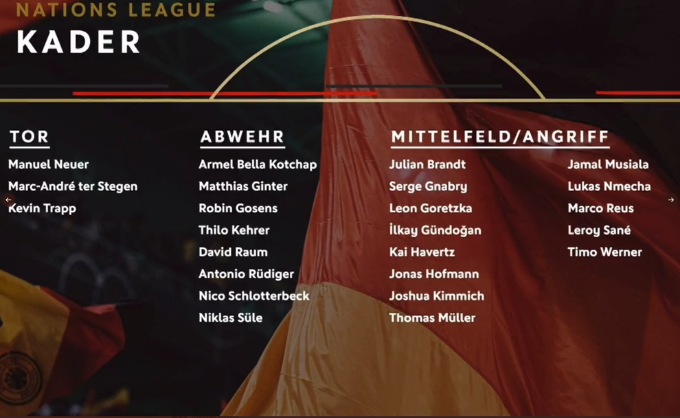 В състава на Флик попаднаха и още трима играчи, които не бяха измежду извиканите за дуелите през юни. Това са вратарят на Барселона Марк-Андре тер Стеген, бранителят на Фрайбург Матиас Гинтер и халф-бека на Интер Робин Госенс.