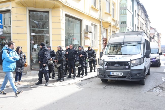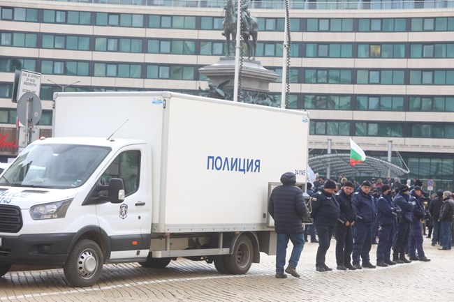 Полиция има и по улиците към Министеството на вътрешните работи. Униформените седят настрана, само че пред министерствата и пред Народното събрание са на забележими позиции. Полицаите не се намесват, в случай че не стане проблем. Освен от Столична дирекция на вътрешните работи, има и чиновници на жандармерията.