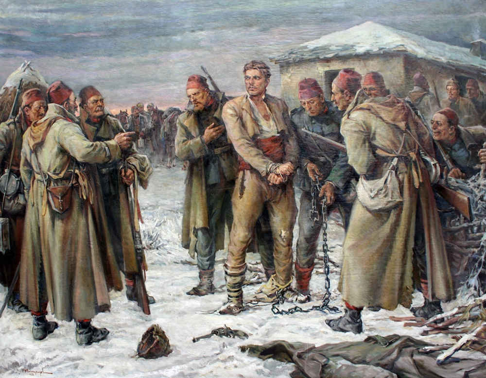 („ Залавянето на Васил Левски “, 1952 година, худ. Никола Кожухаров)