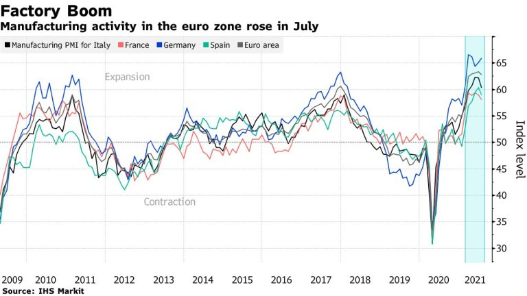 Икономиките по света се възвръщат от пандемията и европейските фабрики работят с цялостна пара. Бизнесите в Северна Азия също се възползват от растящото международно търсене, само че Югоизточна Азия — където сега пандемията бушува с всички сили — показва какъв брой бързо рецесията може да избухне още веднъж. Засега увереността за ярко бъдеще в еврозоната остава висока. Индекс, който мери икономическите упования, се повиши до най-високото си равнище от най-малко 1985 година насам. Международният валутен фонд също увеличи прогнозата си за стопанските системи на 19-те страни, които споделят еврото. Европейската централна банка се готви за " мощно " нарастване на икономическата интензивност през актуалното тримесечие. " Производителите и техните снабдители не съумяват да покачат производството задоволително бързо, с цел да отговорят на растящото търсене, което движи цените нагоре ", споделя Крис Уилямсън, икономист в IHS Markit. През юли новите поръчки се усилват доста, подхранвайки мощен растеж на несвършената работа. Широкоразпространеният дефицит на материали и опция за превоз носят и рекорден растеж на разноските и продажните цени. В цялостен контрастност индустриалният бранш на Китай записва най-слабата си агресия от съвсем година и половина, написа The Wall Street Journal. Официалният показател падна до 50,4 през юли, при 50,9 през юни. Икономисти чакаха 50,8. Границата от 50 разделя експанзията от свиването. Сред аргументите са и рекордните дъждове в централен Китай и наводненията, които последваха на някои места. В някои градове прекъсването на електроподаването също засегна производството. Субиндексът, който следи експортните поръчки, пък потъна още по-дълбоко до 47,7 през юли, при 48,1 през юни, давайки сигнал за отслабващо външно търсене за китайски артикули. Възможно закъснение на цялата стопанска система бе очебийно от показателя, който следи услугите и строителството. Той падна до 53,3 от 53,5 през юни.
