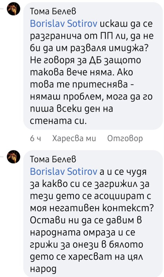 Скандалът при зелените се удостоверява и от коментар във Facebook на деятеля от партията Тома Белев. В обява той написа, че съгласно него Демократична България към този момент не съществува.