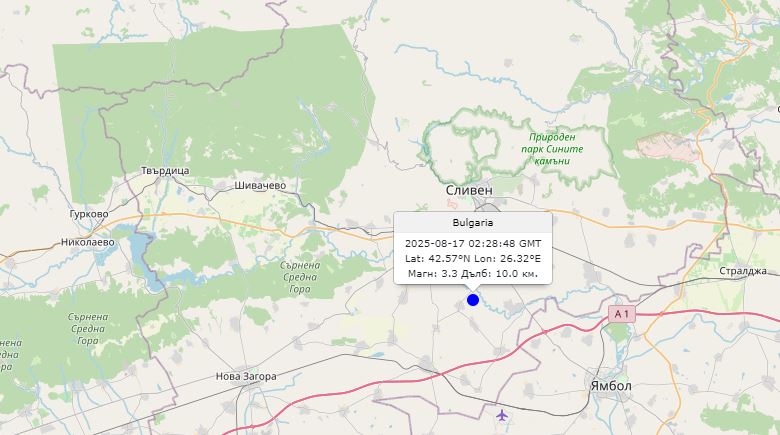 Земетресение беше записано в 05:28 ч. в неделя на 9,2 км североизточно от град Кермен, покрай Сливен и Ямбол.