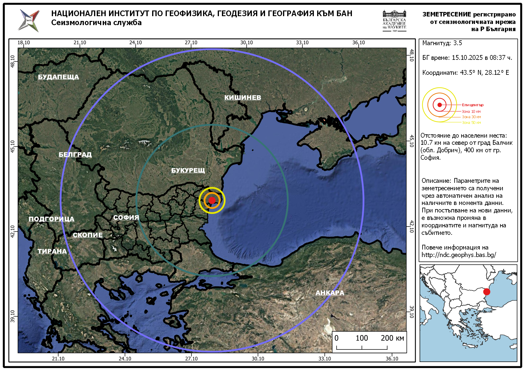 Той е бил регистриран в 08:37 часа и е с дълбочина 18,4 километра, оповестяват от НИГГГ-БАН. Има данни, че е усетено от хората. Епицентърът е бил на 10,7 км от Балчик.