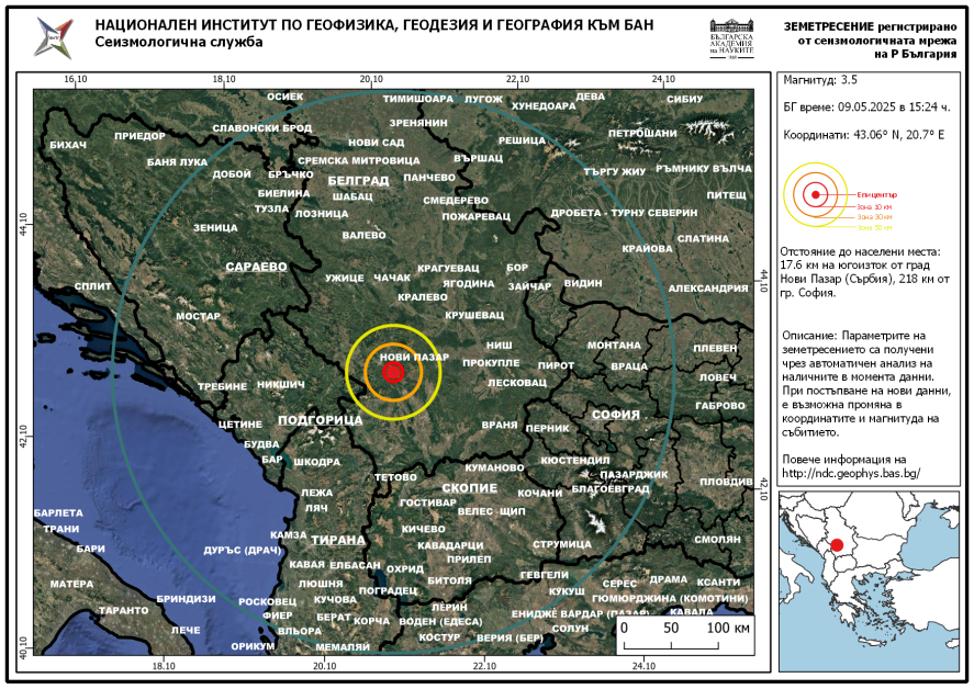 Трусът със мощ 3,5 по скалата на Рихтер е регистрирано в 15:24 часа на територията на Косово. Земетресението е на към 18 километра от Нови пазар с дълбочина от 14,2 километра.