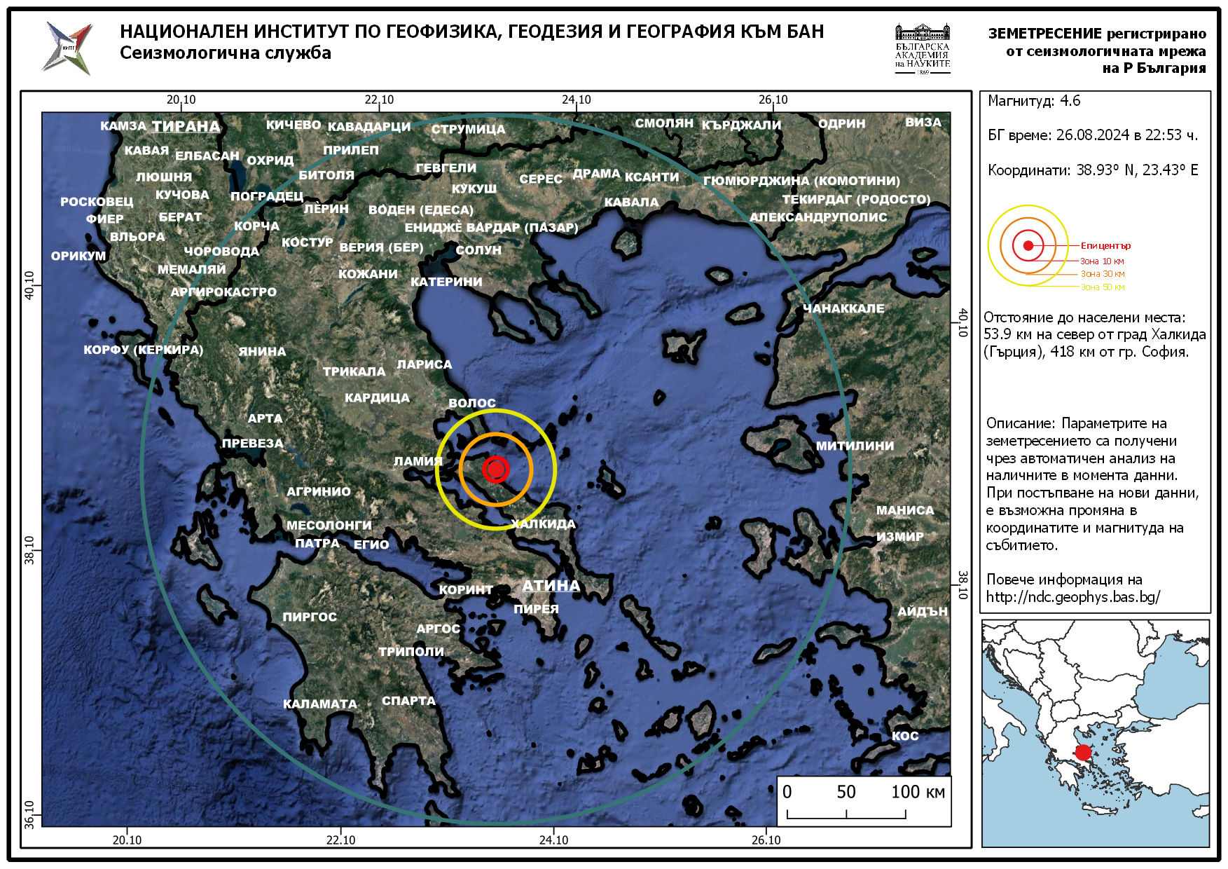 Станал е минути преди 23 часа на 54 км северно от град Халкида.