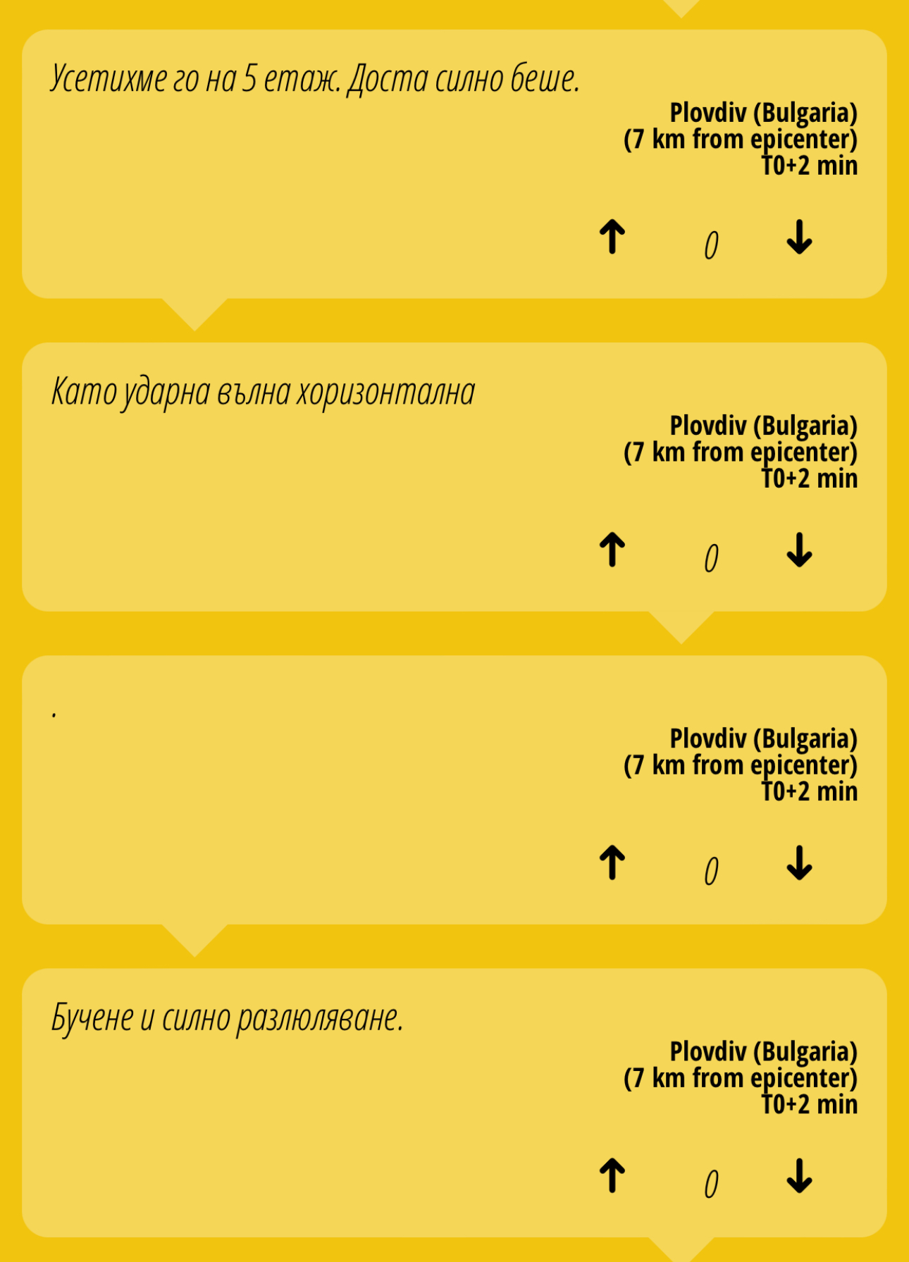 " Силно разтресе - като за трети етаж. Туко-що още веднъж, само че по-слабо ", разказва Румяна В.