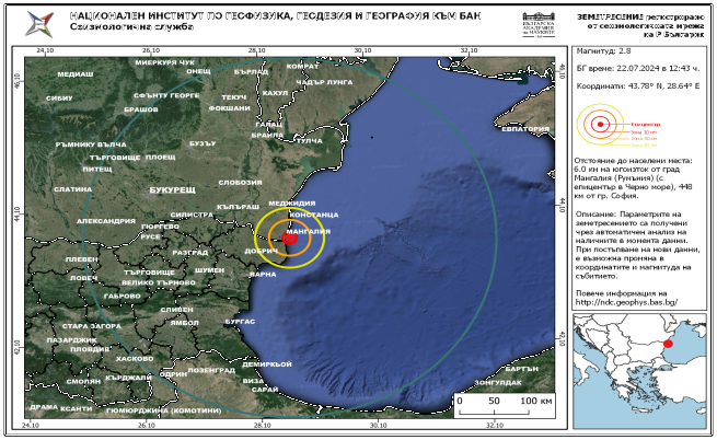 Епицентърът е на 50 км от Добрич и на 6 км югозападно от румънския град Мангалия.