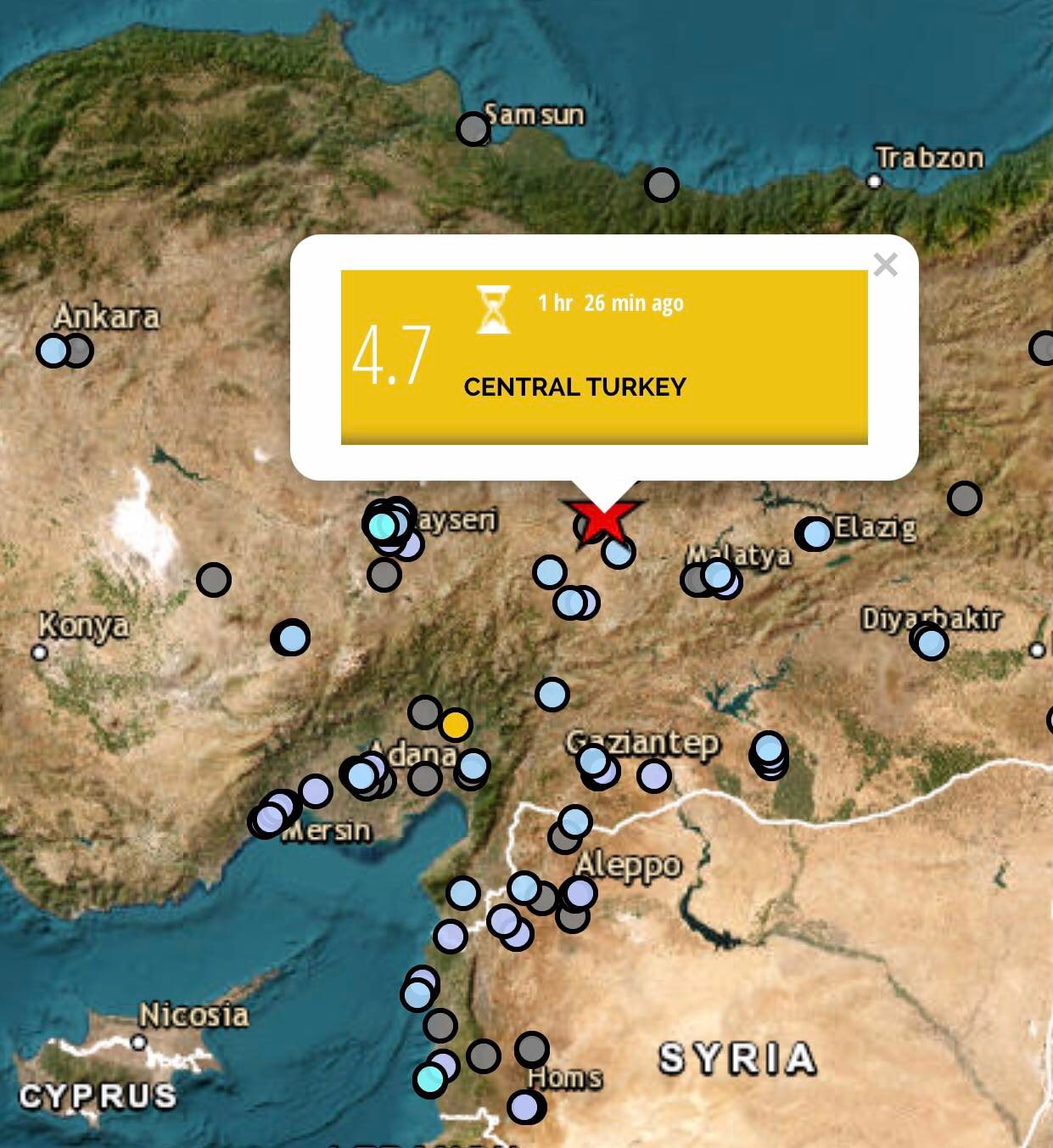 Земетресение с магнитуд 4,7 е записано в 20:19 ч. локално време в Централна Турция. Това демонстрира информация в Европейския сеизмологичен център.