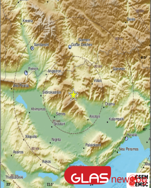 Земетресение с магнитуд М=3.8 е записано в региона на град Серес, Гърция.