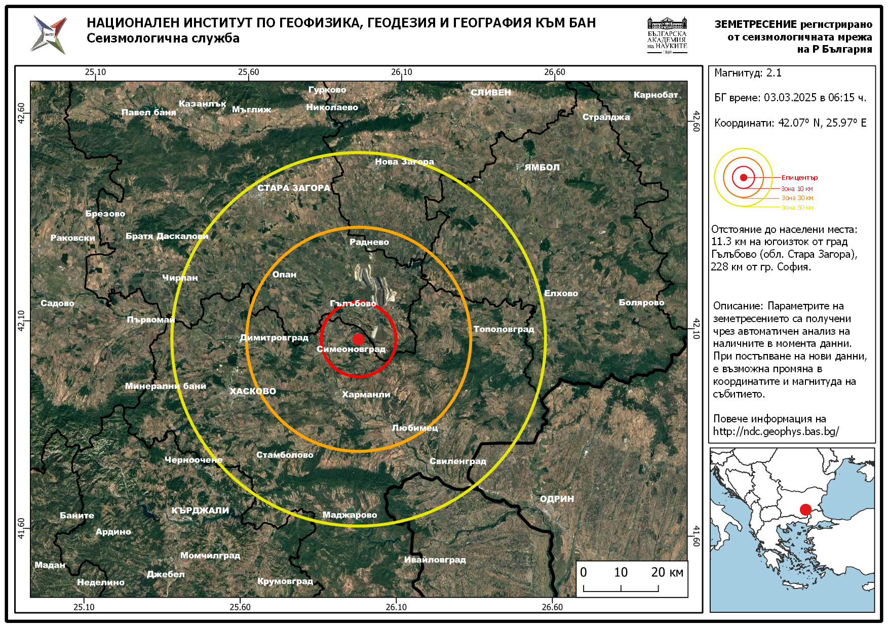 Земетресение в Старозагорско КАРТА