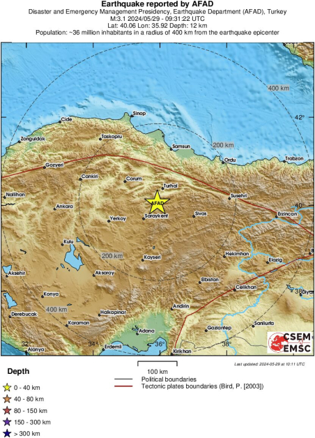 Земетресение с магнитуд от 3,1 по скалата на Рихтер е записано в централната част на Турция в 12:31 часа локално време, демонстрира информация в Европейския средиземноморски сеизмологичен център.