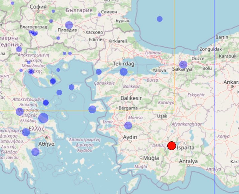 Епицентърът на труса е бил на 54 километра югозападно от Испарта, град с население от 172 000 души, и на 20 километра южо от Башмакчъ. Дълбочината му е била на седем километра.