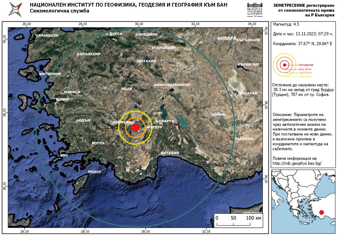 Земетресение с магнитуд от 4,5 по скалата на Рихтер е записано в Западна Турция. Това демонстрира информация на уеб страницата на Европейския средиземноморски сеизмологичен център (EMSC).