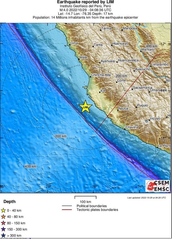 Епицентърът на земетресението е бил на дълбочина 15 км и на 79 км. източно от град Ика, който е с население от 246 000 души.