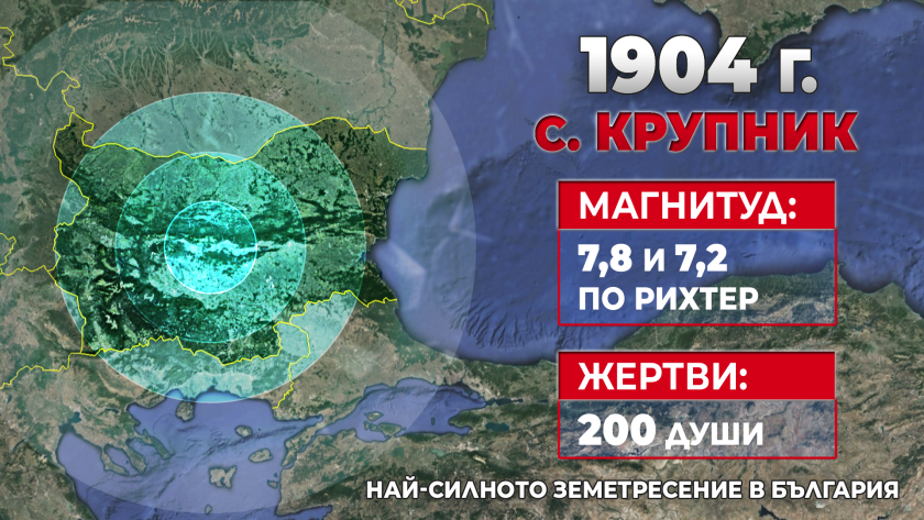 е регистрирано през 1904 година в село Крупник , община Симитли. На 4 април регионът е разтресен от два мощни труса от 7,8 и 7,2 по скалата на Рихтер. Жертвите са към 200 души. По това време високо строителство не е имало. Малките кирпичени къщи в зоната на трусовете са били разрушени. По време на трусовете в региона са се получили процепи до 100 - 150 метра.