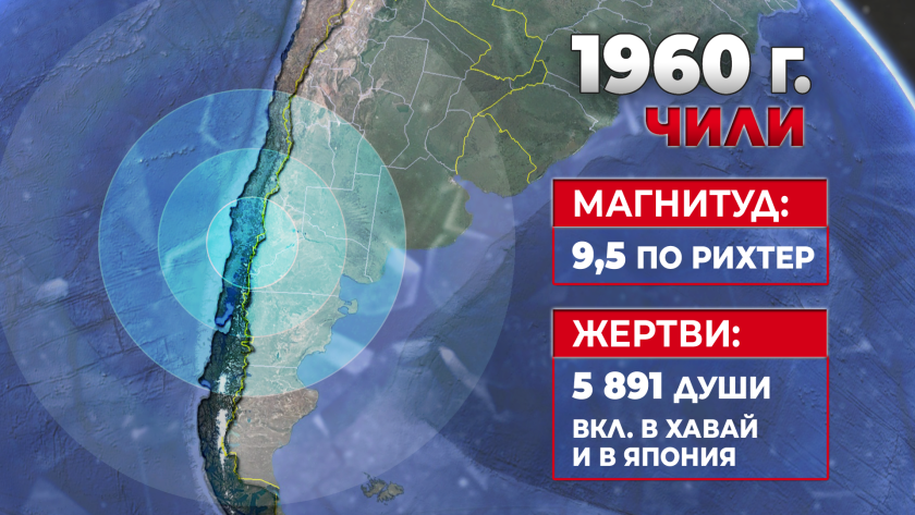 Най-силният трус в света, регистриран в миналото, е с магнитуд 9,5 по Рихтер, покрай Валдивия, Чили.