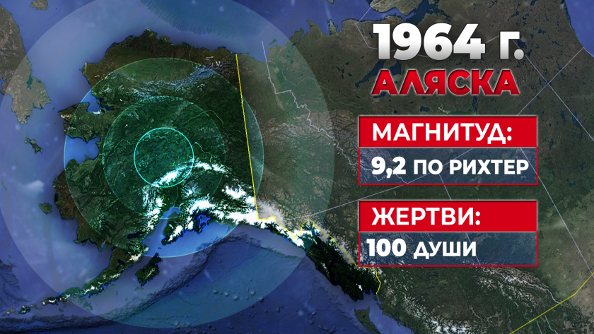 В Аляска през 1964 година сеизмографите регистрират магнитуд 9,2 по Рихтер. Трусът на протока Принц Уилям е лишил живота на 100 души, а икономическите загуби са в размер на близо 311 милиона щатски $.