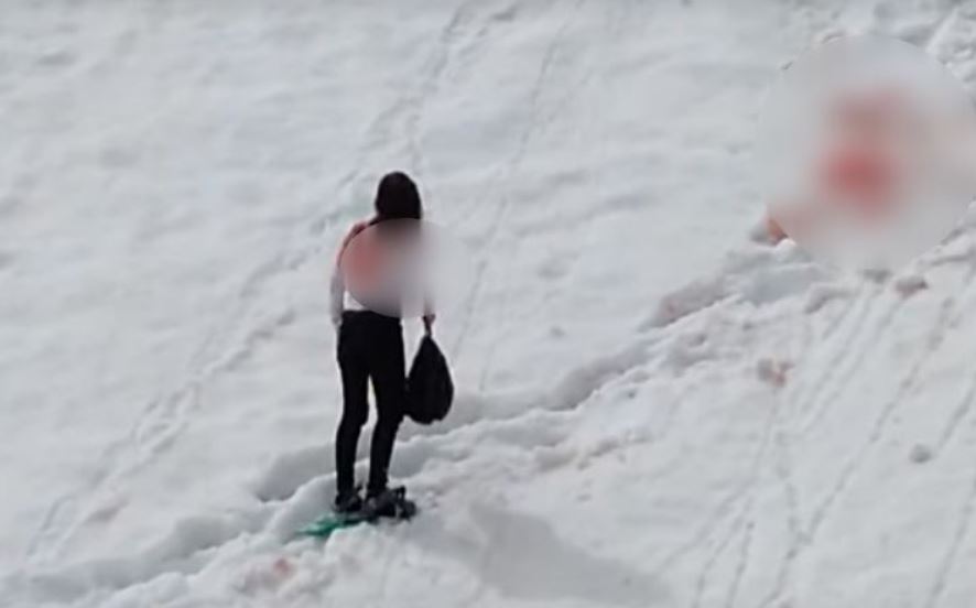 Красимир Елинов споделя, че чужденка се е пързаляла по снежния скат под връх Безбог в Пирин. Тя е била част от група дружно с още двама души, като всички паднали. Тя паднала и се пързаляла през скали и клек, а фрагменти демонстрират, че е претъпяла пострадвания, поради които оставила кървава диря в белия сняг. Всичко се разиграло в неделния следобяд.