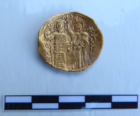 Златна монета на Йоан ІІІ Дука Ватаци, открита при археологическите проучвания на Средновековен град Червен