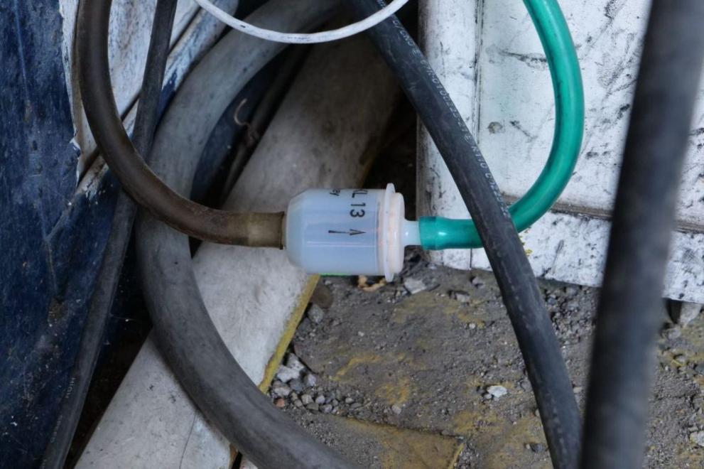Установени е, че водопровод, свързващ газ-анализатора със сонда, към единия край, на която бил причислен маркуч. Проследявайки го, чиновниците забелязали, че влиза в офисното помещение през прикрита дупка в стената.