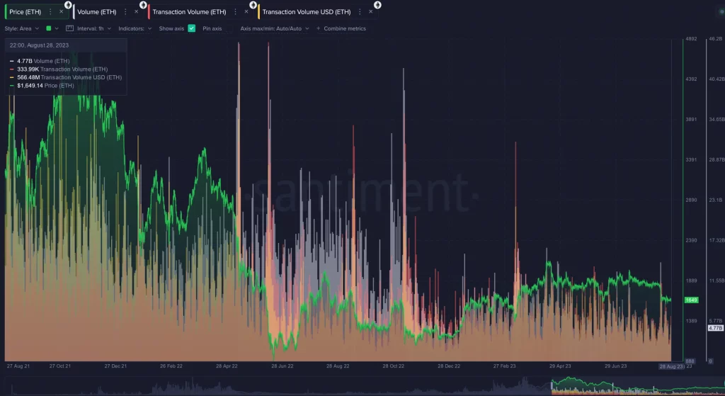 Маркетинговият шеф на Santiment също по този начин акцентира позитивната връзка сред размерите на транзакциите и търговията с Етериум и цената на ETH.