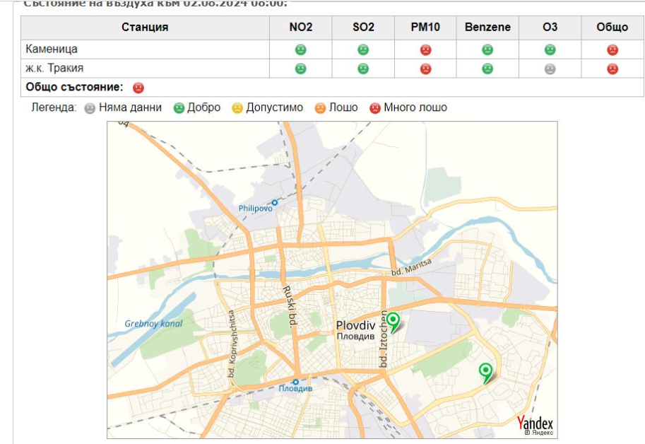 Данните от измерванията на мобилните станции демонстрират централизация от 350 mg/m³ ФПЧ 10.
