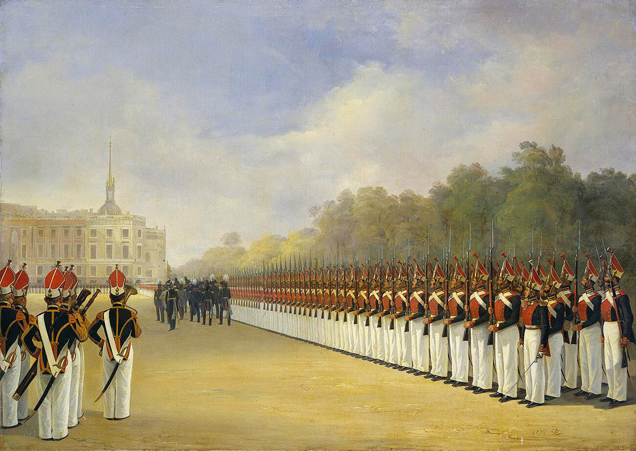 William Heath/National Army Museum Числеността на английските войски, разпръснати из индийските владения на Източноиндийската компания подхожда на числеността на казаците – над 22 хиляди без да се брои слабото опълчение, мобилизирано от локалното население.