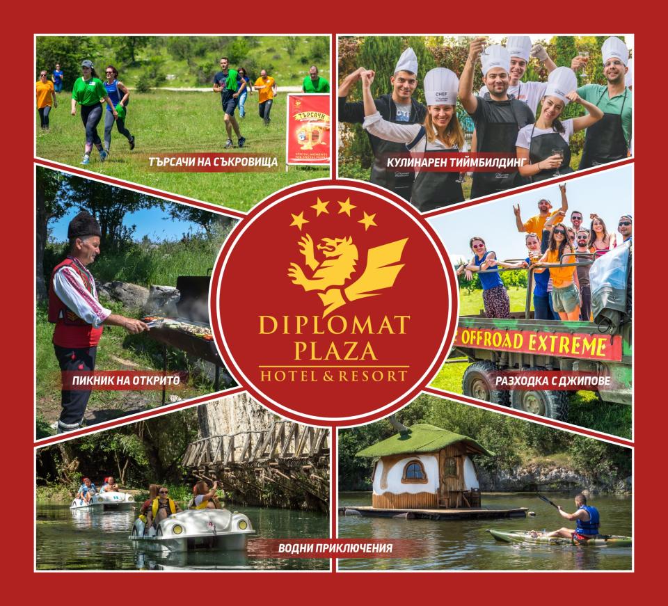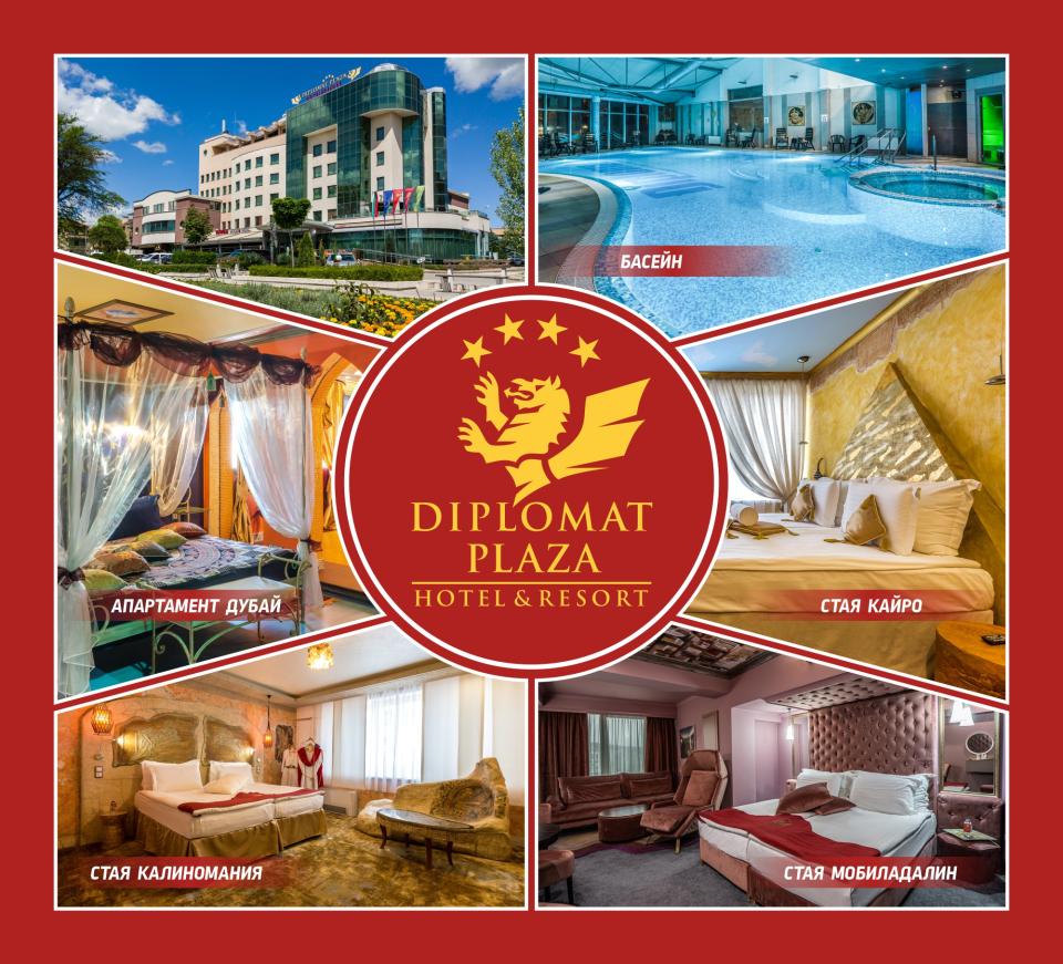 Diplomat Plaza А какво ви чака отвън стаите на хотела, ще попитате. разполага с 6 разнообразни заведения за хранене и провежда специфични тематични събития, които ще ви пленят с невероятна атмосфера, вкусни ястия и издирван уют.