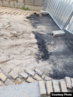 „ Това стартира края на август. Вътре разкопаха двора, сложиха вътре нещо, кабели ли има, какво, не мога да кажа “, сподели пред Свободна Европа една от наемателките на помещение наоколо до този вход на Партийния дом.