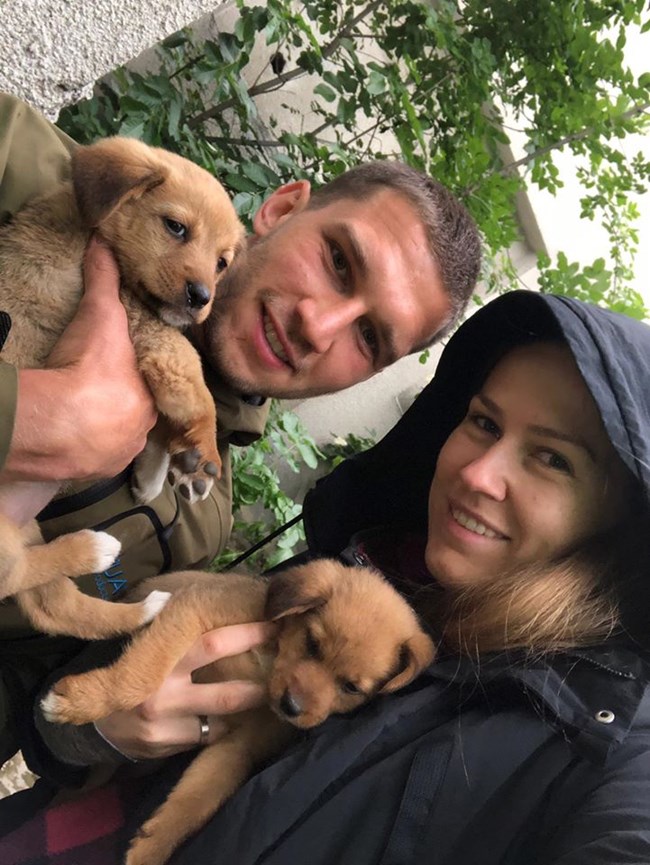 Якоб Свиерчук и съпругата му Ала раздават кученца за осиновяване
