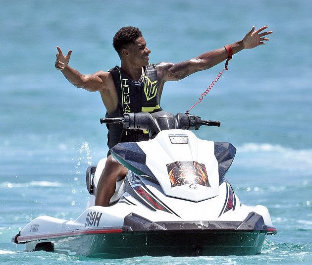 Медиите на Острова пишат, че Рашфорд прекарва по-голямата част от свободното си време, порейки кристалночистите морски талази с джет. Той е в Барбадос от няколко дни и се пробва да релаксира оптимално преди завръщането си в Карингтън.