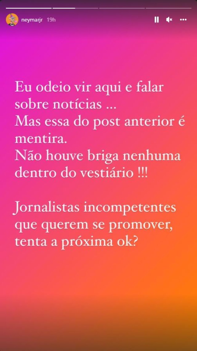Неймар разяснява обстановката в обособена обява: " Ужасно е, че би трябвало въобще да приказвам за тази " вест ", само че тя е неистина. Не е имало пердах в съблекалнята. Некомпетентни публицисти, които желаете да изпъкнете, пробвайте нещо друго! "