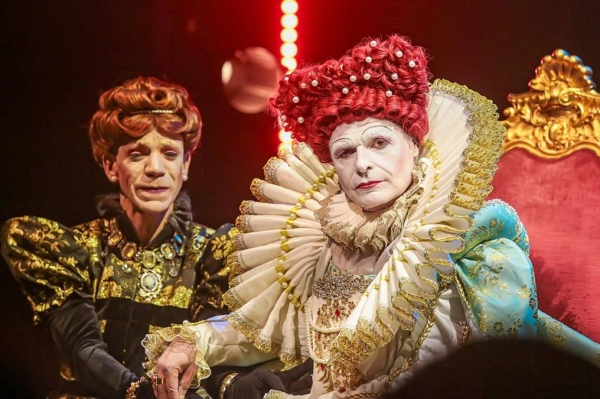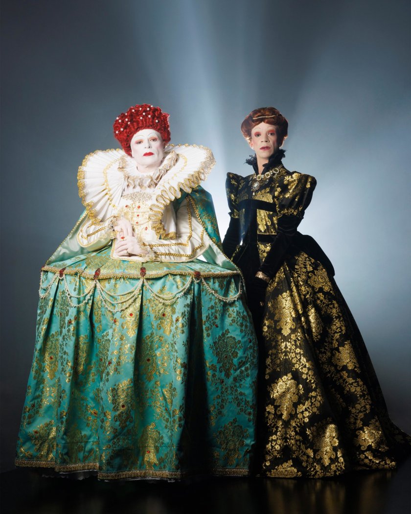 „ Два трона. Две кралици “ споделя историята, която в никакъв случай не се е случила, само че е трябвало да се случи. Представя една мислена среща сред върли врагове — Мария Стюарт и Елизабет I кралица на Англия. Пиесата демонстрира битката за трона сред две дами — борбени и дръзки, които все пак са подвластни една от друга. Представени са от Начо Герерос и Николас Перес в един превъзходен актьорски двубой. Това е зрелище изпълнено напрегнато, което няма да остави публиката безразлична: пристрастеност, интриги, деликатност, емоция… спектакъл в най-чистата му форма ", споделят уредниците.
